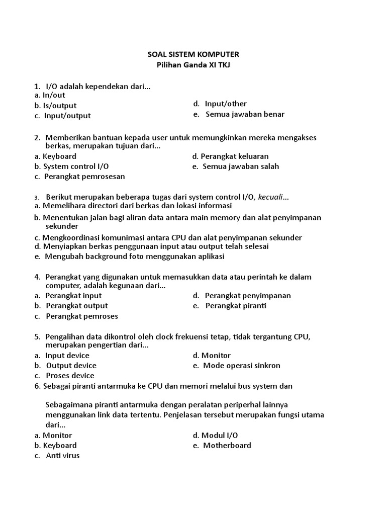 Soal jawaban pilihan ganda perakitan komputer semester genap rocus. Soal dan jawaban sistem komputer kelas 10Contoh soal dan jawaban sistem komputer 2 soal pilihan ganda 1. Berikut soal uas mapel sistem komputer kelas x semester 1 smk.